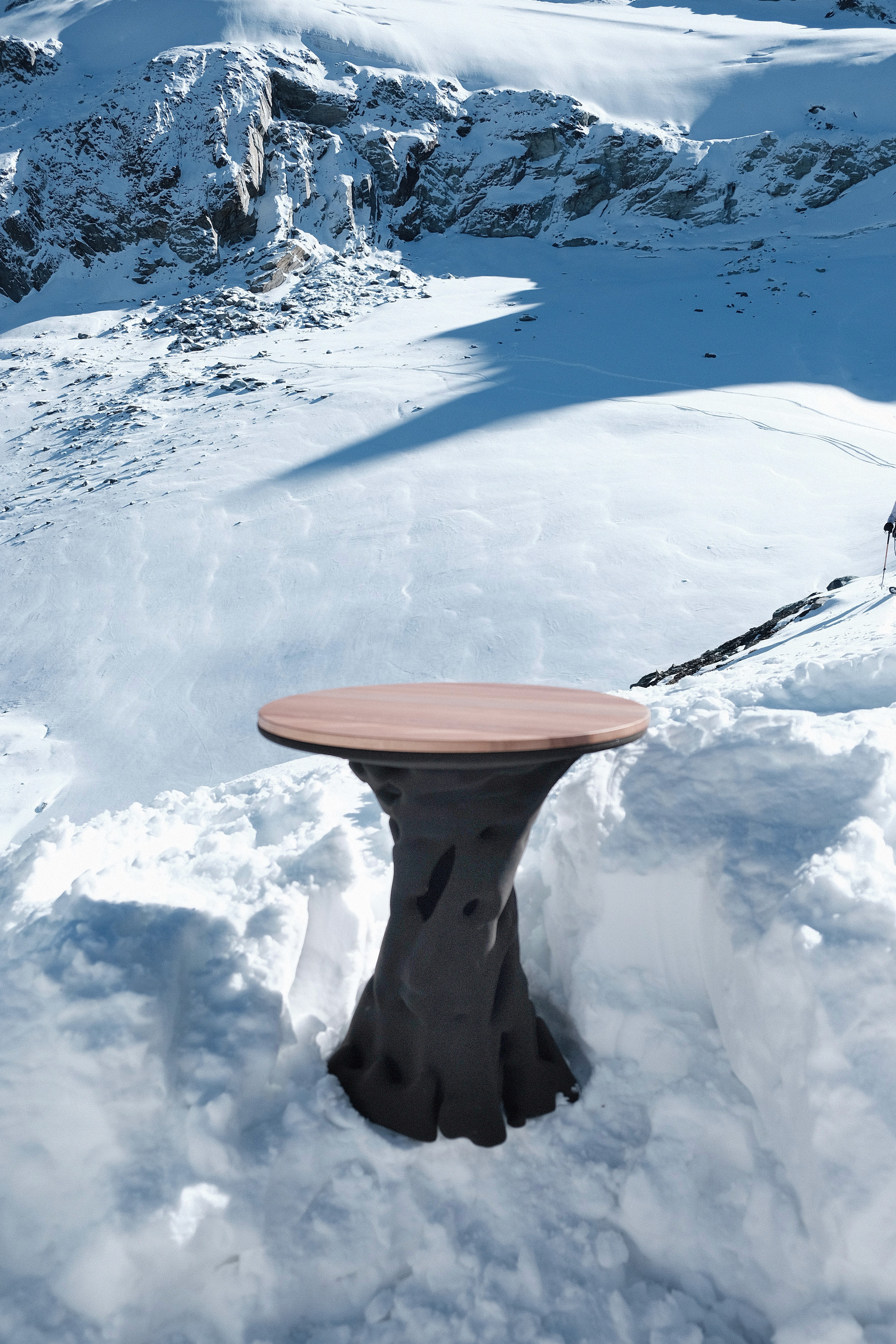 The collection is a bespoke suite of interior artifacts developed for the exclusive enclave of Saas-Fee. Merging avant-garde material research with the heritage of the Swiss Alps, each piece serves as a tactile dialogue between the landscape and the living space. By utilizing 3D-printed recyclable silica sand, Wedge has created a furniture series that embodies the concept of "Circular Elegance"—where the permanence of stone meets the fluidity of digital design.
